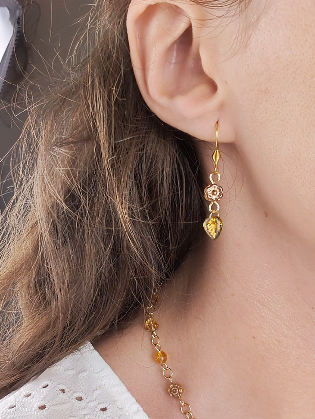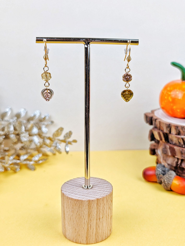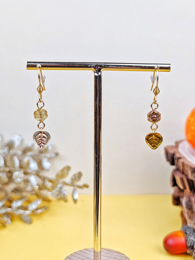 Jolies boucles d'oreilles aux couleurs asymétriques, reflétant les teintes douces et chaudes de l'automne...